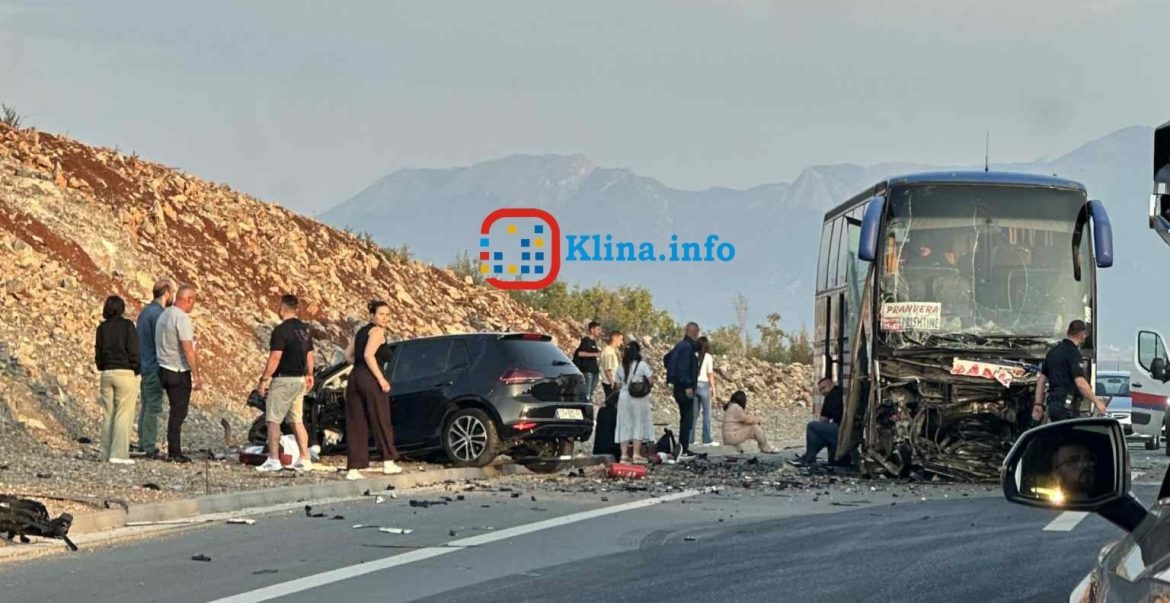 Një veturë dhe një autobus që po bartte udhëtarë në aksin Pejë-Prishtinë janë përplasur mes vete, raporton IndeksOnline.