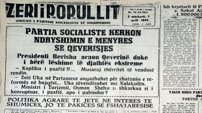 Edhe pse kishte vetëm një vit në pushtet në qeverinë e drejtuar nga Aleksandër Meksi bëhen ndryshimet e para. Në shtypin e shkruar të datës 7 prill 1993 pasqyroheshin 3 ndryshimet në qeverinë Meksi. ZP(Zëri i Popullit) në faqe të parë shkruante : “Presidenti Berisha arnon qeverinë duke i bërë lëshime të djathtës ekstreme”. Rexhep Uka dhe Bashkim Kopliku u larguan nga drejtimi i Bujqësisë dhe Rendit dhe mbetën vetëm në postin e zv.kryeministrit dhe po ashtu u largua edhe Ministrti i Turizmit Osman Shehu. Gazeta Koha jonë për këto lëvizje shkruan : Kush fitoi dhe kush humbi me ndryshimet në qeveri?”