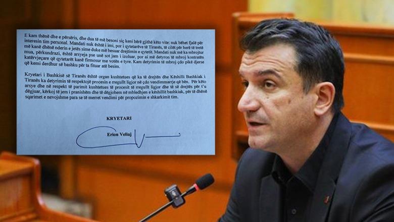 (Letra e Erion Veliajt dërguar Këshillit Bashkiak të Tiranës)