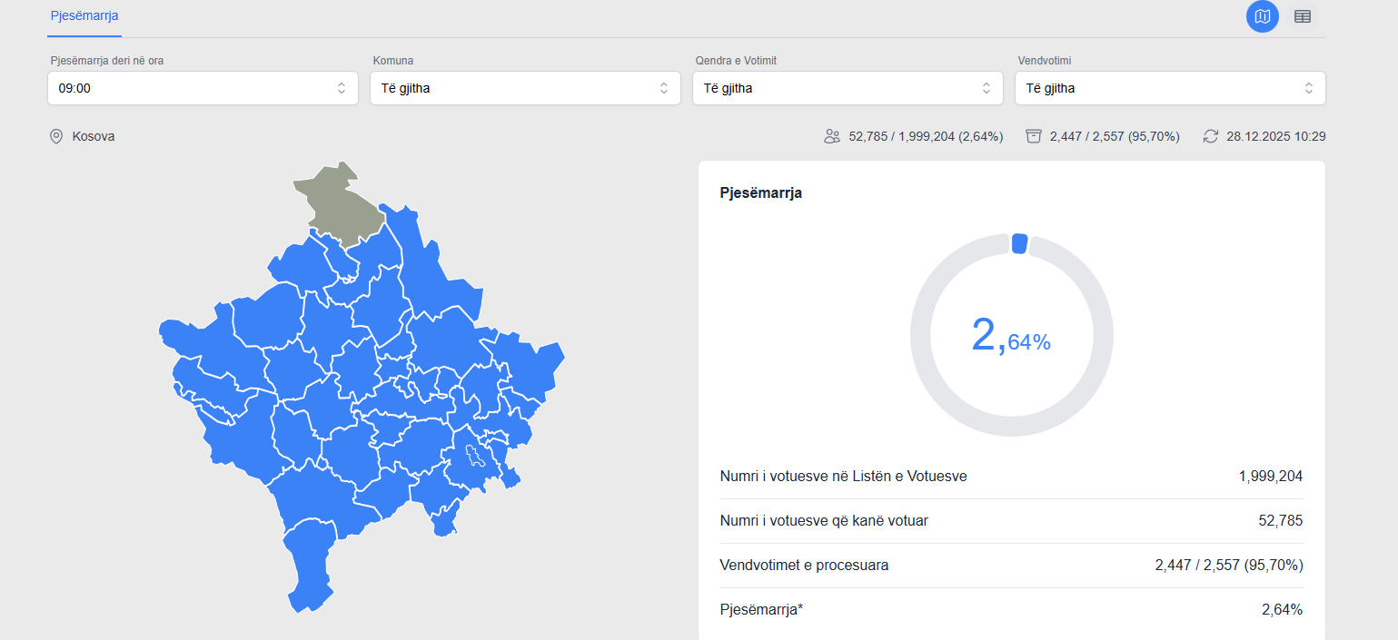 Sipas përditësimit të KQZ-së, 52,785 apo 2,64% është dalja e votuesve deri më tani.