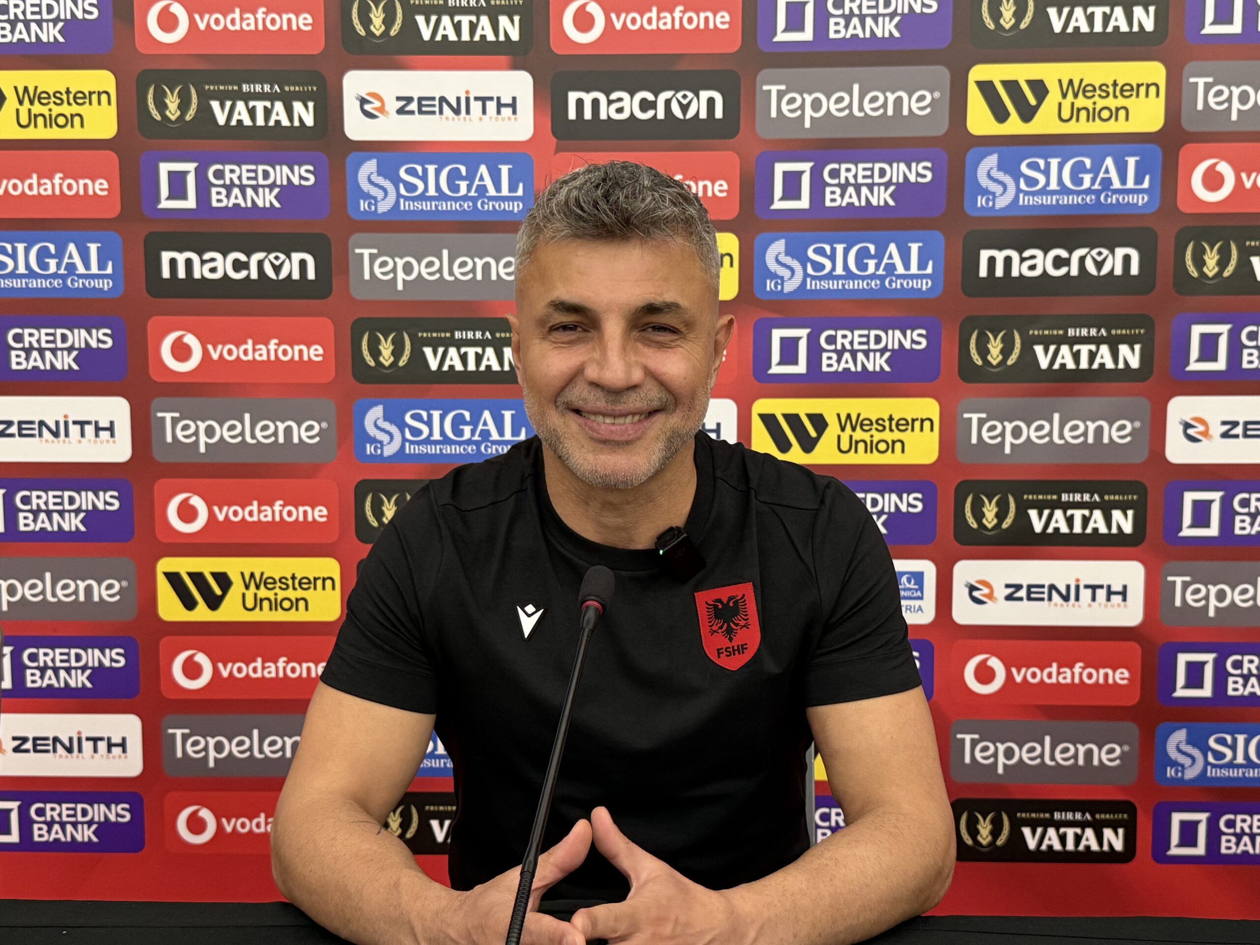 “Lista e lojtarëve? Lista është pothuajse e njëjtë me ndeshjen e fundit ndaj San Marinos. Ka shumë pak ndryshime. Kemi dy mungesa shumë të rëndësishme si Zylyf Muça mbrojtës i djathtë dhe Enes Osmani mbrojtës i majtë, janë zëvendësuar nga Diar Vokrri (FC Ballkani, Kosovë) dhe disa të tjerë. Mendoj që Vokrri është një prurje shumë e rëndësishme e jona. Dua ta falenderoj që zgjodhi Shqipërinë. Është një lojtar shumë i mirë, mendoj që do na ndihmoj shumë.