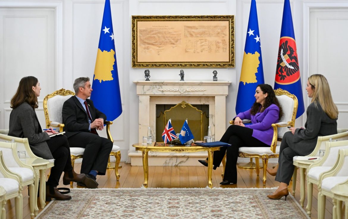 Presidentja e Kosovës, Vjosa Osmani, priti sot në takim Ambasadorin e Mbretërisë së Bashkuar në Kosovë, Jonathan Hargreaves.