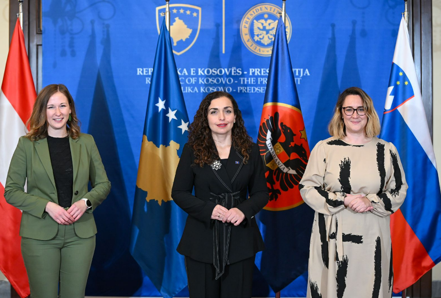 Presidentja e Kosovës Vjosa Osmani, ka pritur në takim Ministren Federale të Austrisë për Evropë, Integrim dhe Familje, Claudia Plakolm, dhe Sekretaren e Shtetit të Sllovenisë për Çështje Evropiane, Neva Grashiq.