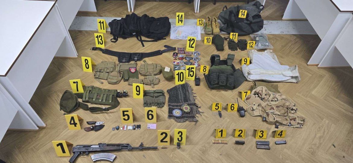”Sot rreth orës 13.00 pas pranimit të informacionit se në një vend të caktuar në Mitrovica Veri mund të ketë substanca narkotike, Policia e Kosovës ka zhvilluar një bastisje. Gjatë bastisjes në këtë shtëpi Policia ka has dhe ka sekuestruar 1 AK-47 2 Granata Dore M-75 2 Radiolidhje, 2 Antiplumba, Kapelë, Dorëza, Çanta Ushtarake, Karikator të zbrazët e të mbushur me fishekë të pistoletës, Harta Rrip brezi Sprej Thikë Shall kamufllazhi etj”