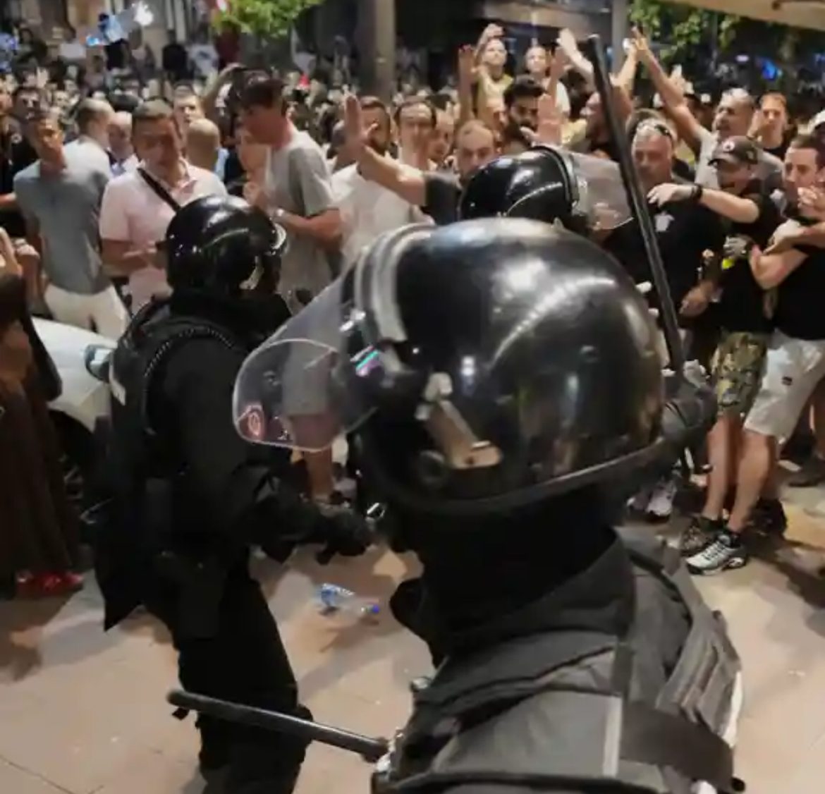 Po ashtu në Beograd, pranë selisë së partisë në pushtet, protestuesit u përplasën me policinë që i pengoi të afroheshin tek zyrat e SNS. Vuçiç i akuzoi protestuesit antiqeveritarë se po përpiqen të “nisin një luftë civile”.