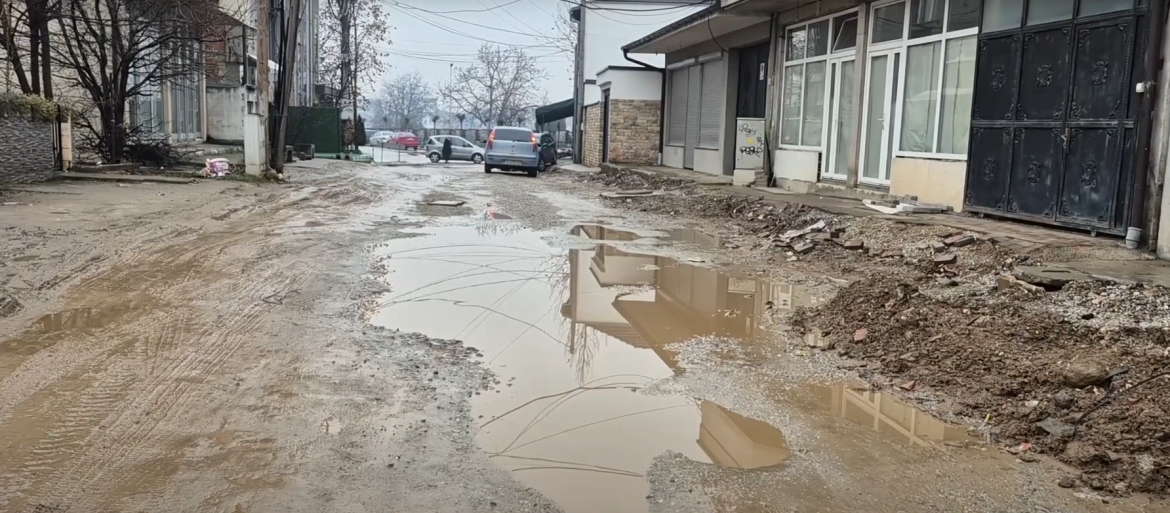 Rruga ‘Shtipska’ në Tetovë ka mbetur në baltë ndonëse punimet për rikonstruim filluan pak javë para zgjedhjeve lokale, raporton Portalb.mk.