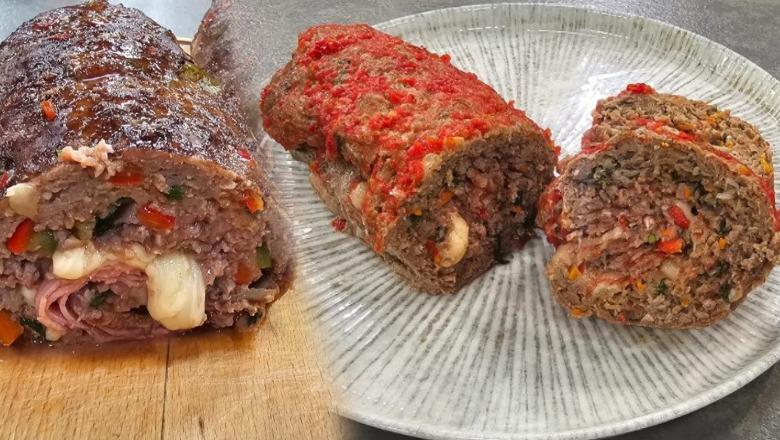 Grijmë imët qepën, e shtojmë te mishi i grirë bashkë me kripën, piperin dhe paprikën. I përziejmë mirë. Grijmë imët karotën dhe kërpudhat dhe i kaurdisim në tigan derisa të avullojë komplet lëngu. I lëmë të ftohen. Përziejmë perimet e fërguara me mishin e grirë dhe shtojmë mocarelën të prerë në kubikë. I përziejmë sërish që masa të homogjenizohet mirë. E shtrijmë masën e përgatitur në një letër pjekjeje dhe e mbështjellim role. E vendosim në furrë të parangrohur në 200 °C për 40–45 minuta. Më pas heqim letrën, lyejmë sipërfaqen me salcë të ëmbël ose të thartë sipas preferencës dhe e vendosim sërish në furrë edhe për 10 minuta të tjera, sa të marrë ngjyrë.