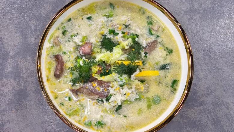 Të brendshmet e mishit pasi i kemi shpëlarë mirë i përvëlojmë në ujë të vluar i kullojmë dhe i presim në kubikë të vegjël. Në një tenxhere me gjalpë kaurdisim qepët e njoma (kryesisht pjesën e bardhë) derisa të ulin vëllimin, shtojmë më pas të brendshmet dhe vazhdojmë kaurdisjen për pak minuta. Më pas shtojmë pak nga lëngu i zierjes së të brendshmeve dhe orizin. E lemë supën të ziejë për rreth 15 minuta. Rregullojmë shijen me kripë dhe piper dhe më pas e presim me vezë dhe limon. Në fund shtojmë kopër të grirë imët dhe piper të zi kokërr të bluar.