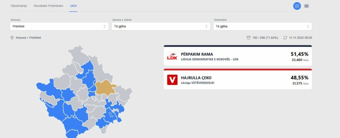Verifikohen 71 % e votave në Prishtinë, ky është përditësimi i fundit nga qendra komunale