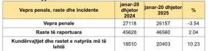 Policia e Kosovës ka bërë të ditur se gjatë periudhës janar–20 dhjetor janë iniciuar mbi 26 mijë raste për vepra penale, që përbën një rënie prej 3.54 për qind krahasuar me periudhën e njëjtë të vitit 2024.