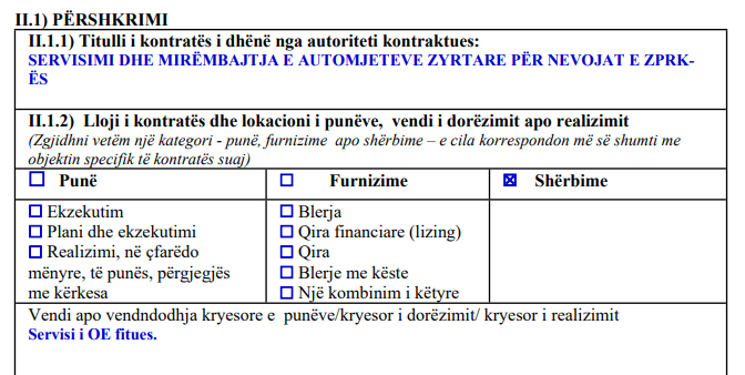 Sipas njoftimit nga E- prokurimi është paraparë servisimi i 6 automjeteve zyrtare.